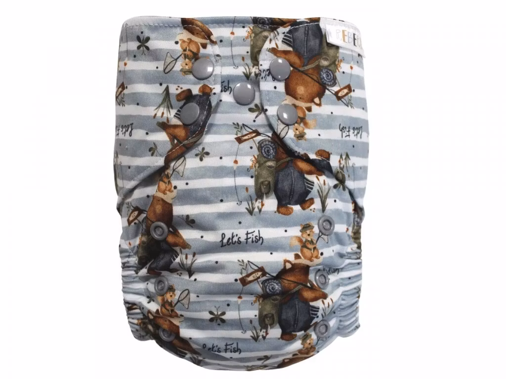 Beskrivning: Breberkys pocketblöjor är väldigt enkla att använda och har en fantastisk passform för både riktigt smala bebisar likväl, och magiskt nog, för de med riktigt gosiga lår. På blöjans utsidan finns ett vattentät tyg och på insidan bambufrotté som snabbt absorberar vätska. På blöjan framsida finns knappar så att man enkelt kan anpassa storleken både i längden och omkretsen efter bebisen. På insidan av fickan finns 1 knapp i framkant, så man kan knäppa fast inläggen om man vill.