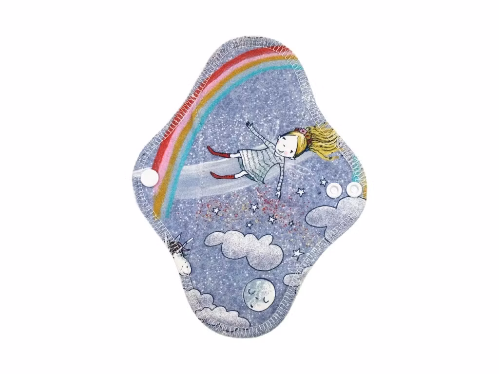 Detta trosskydd från Breberky är lämplig för mindre blödning eller på natten om blödningen är svag. Närmast huden består den av bambu/bomulls frotté, kärnan består av ett lager högabsorberande bomullsfrotté,och undersidan av gömd vattentät PUL under ett lager skrovlig bomullsfrotté. Fördelen med undersidan är att bindan stannar på plats och inte riskerar att glida runt. Den vita undersidan är något stelare och sitter något bättre på plats än den svarta.