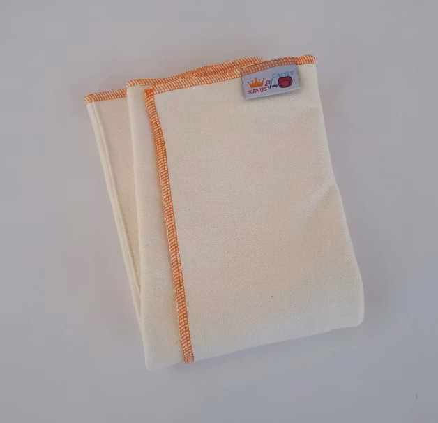 Den här prefolden är sydd på klassiskt vis med 4 lager tyg i mitten och 2 i vingarna. När den viks ihop får du alltså 8 lager törstig hampa(/bambu). I och med att materialet är stretchigt blir det väldigt mjukt och följsamt för barnet. Passar i de flesta blöjor. Eftersom materialet är som insidan i en colleagetröja med loopar, så absorberar det snabbare än hampa brukar och har lättare att hålla lösare bajs kvar.