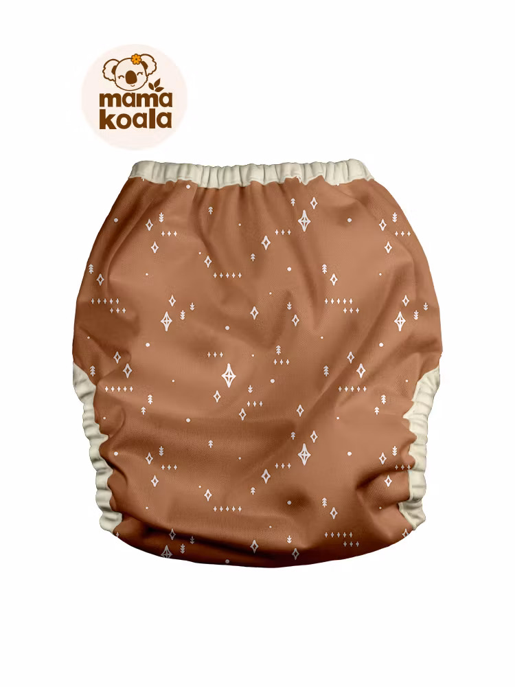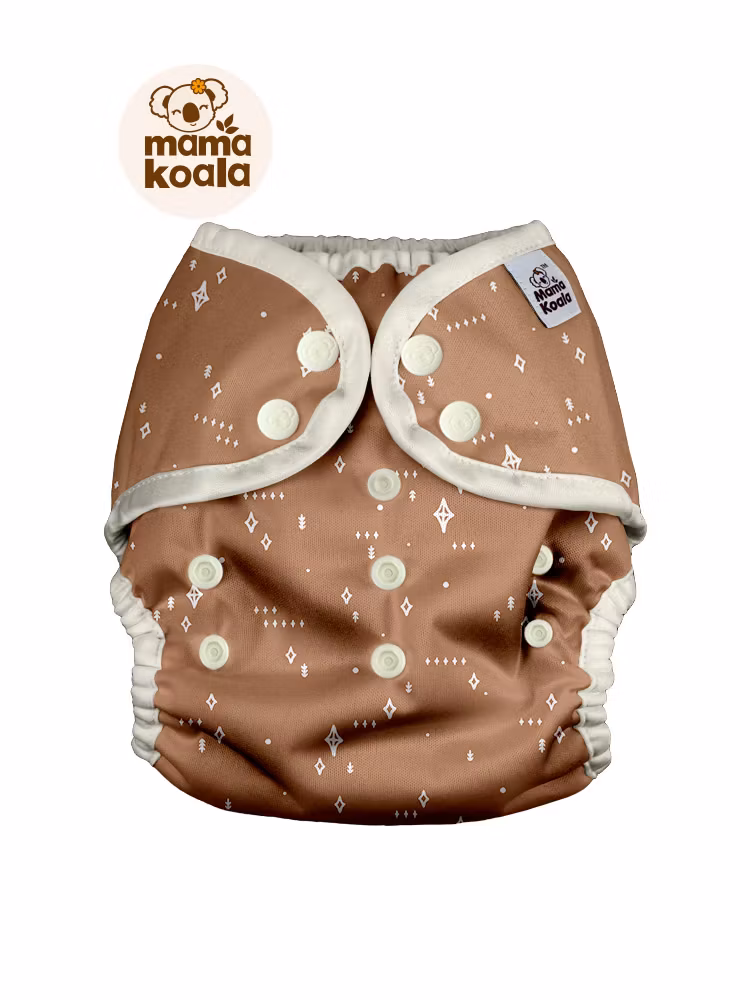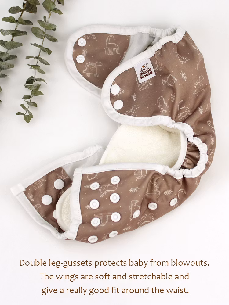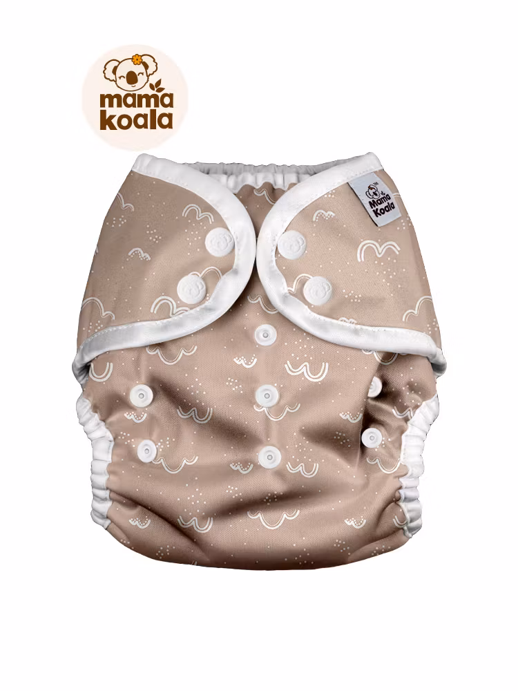 Mama Koalas PUL-skal  är en tygblöja designad att passa de flesta barn oavsett kroppsform. Det vattenavvisande skalet kombineras med valfritt absorberande
