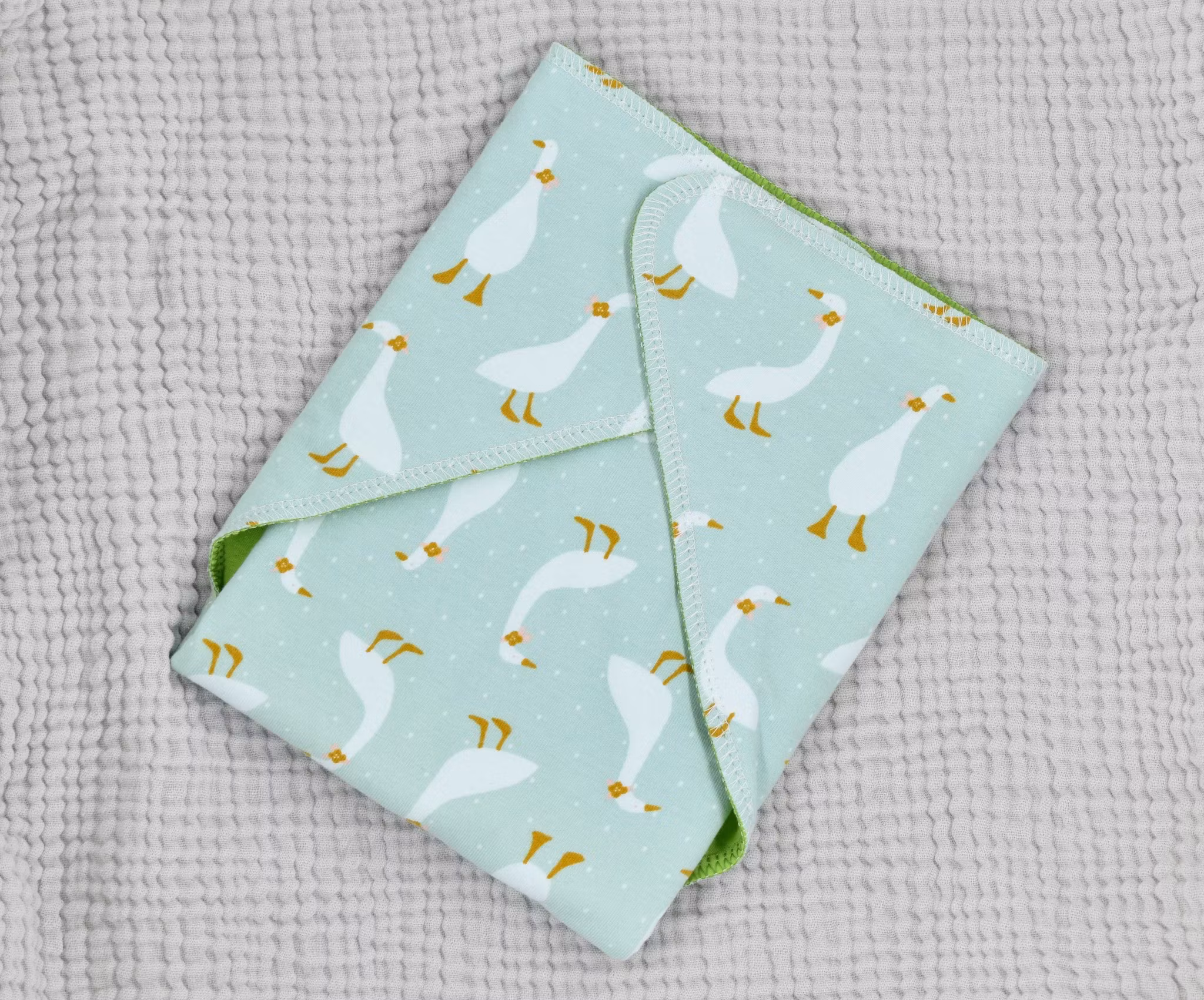 Preflaten kan användas på två olika sätt. Antingen kan du välja att ha bomull som känns blött närmast barnets hud eller vika den så att tenceltyget är mot barnets hud som då ger en sval torrhetskänsla.