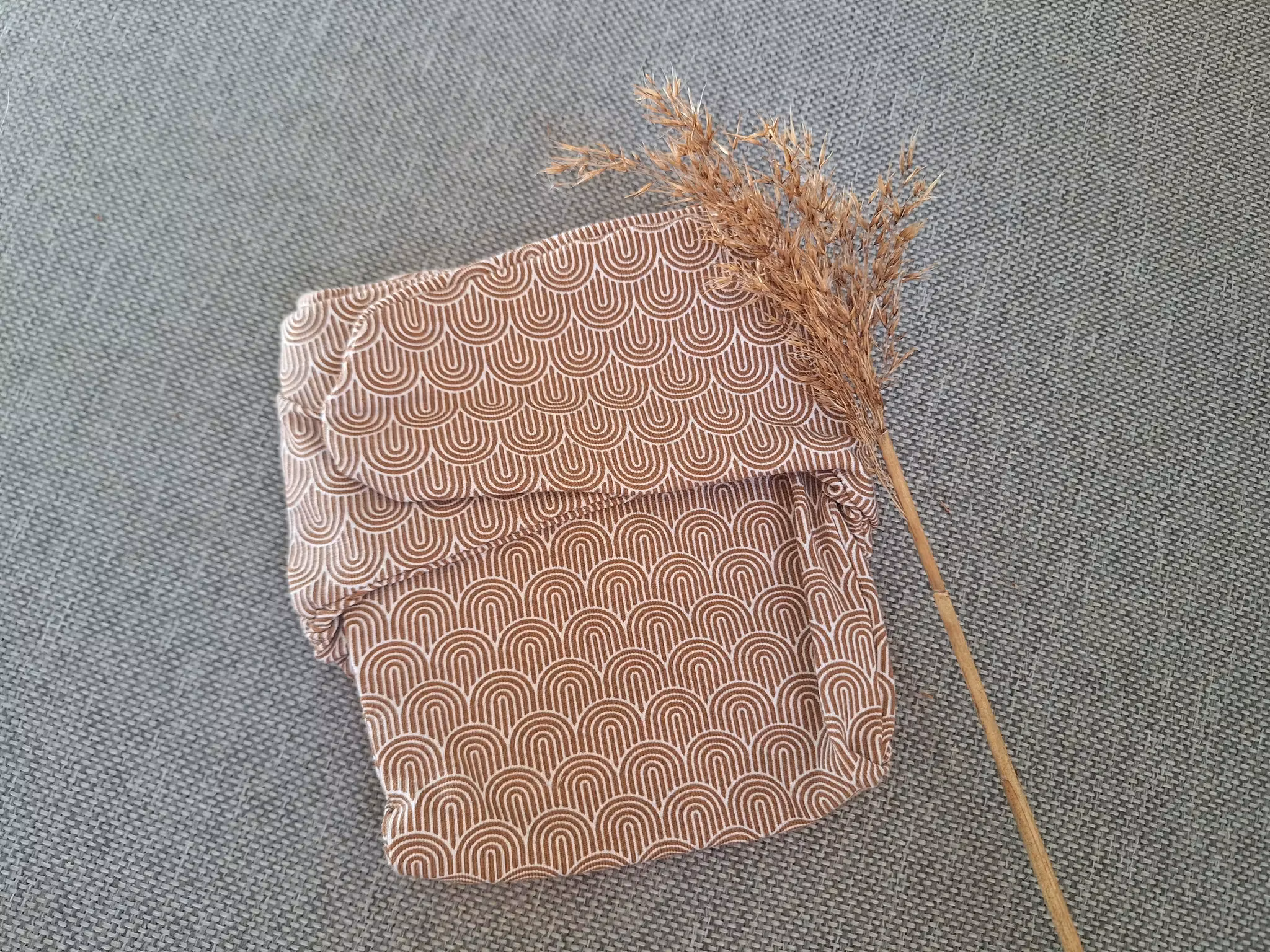 Det här är en unik "formsydd" blöja, som egentligen består av ett lager tunt bomullstyg på ovan och underssidan, som det är tänkt att du stoppar valfria inlägg i. Den är tänkt att användas för att minimera risken för bajsläckor och onödig tvätt för ullskal, så det är egentligen mer ett skydd än en formsydd. Det finns både benresårer och en resår i ryggen för att minimera läckage. Framtill på blöjan finns en stor öppning där du stoppar inläggen. Sedan kan du använda en snappi, blöjnål, blöjbälte för att stänga den, men egentligen håller ullskalet det tillräckligt på plats. Du kan såklart även använda den i pulskal för samma funktion eller vid vila för att få lite uppsugning runt om hela barnet.
