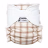 På framsidan av blöjan finns knappar så att man kan anpassa storleken efter barnet. Med blöjan medföljer 2 absorberande inlägg. Ett inlägg kan fästas med knappar i bak på blöjan och det andra inlägg kan vikas efter barnets behov (dubbelt i fram för pojkar eller barn som sover på magen och dubbelt i mitten för flickor). Inläggen kan du använda separat till nyfödda eller båda tillsammans för äldre barn.